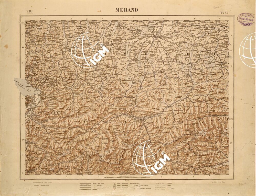 CARTA COROGRAFICA DEL REGNO D’ITALIA E DELLE REGIONI ADIACENTI EDIZIONE 1935-1937 FOGLIO 3 MERANO