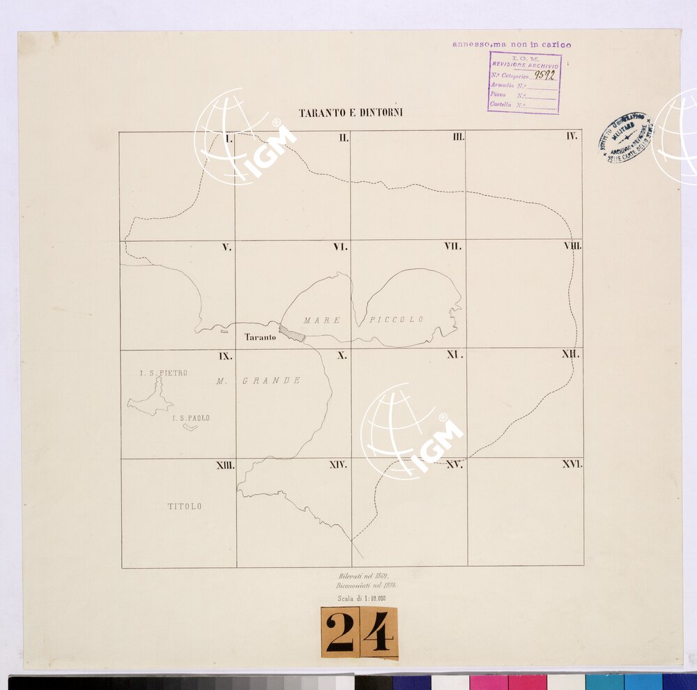 PIANTA TOPOGRAFICA DI TARANTO E DINTORNI LEVATA 1 10.000 NELL’ANNO 1862 – QUADRO D’UNIONE.