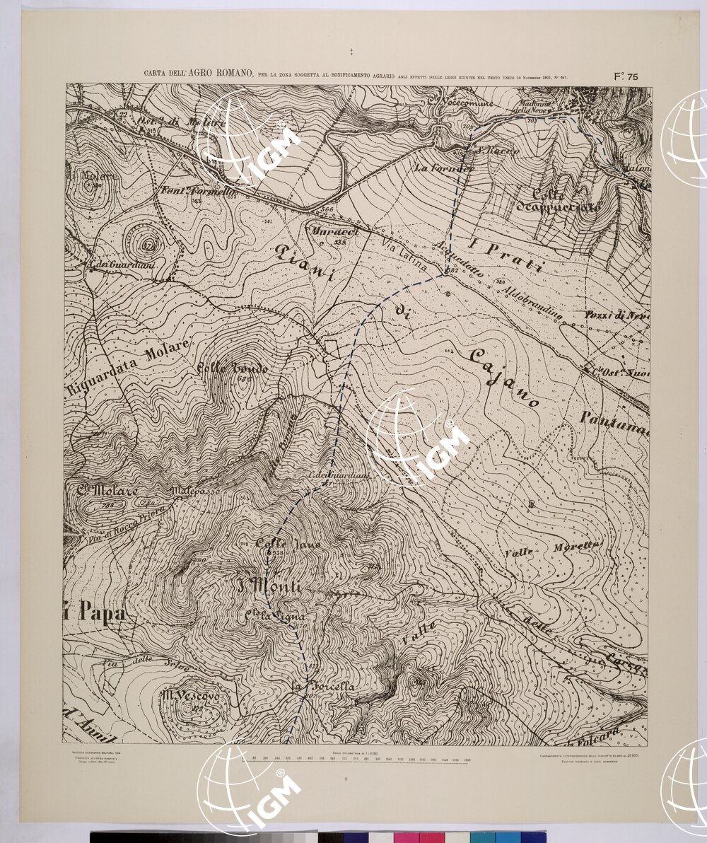 | Titolo proprio | CARTA DELL'AGRO ROMANO NEL RAPPORTO DI 1:8.000 PER LA ZONA SOGGETTA AL BONIFICAMENTO AGRARIO AGLI EFFETTI DELLE LEGGI RIUNITE IN TESTO UNICO CON R.D. 10 NOVEMBRE 1905 N°647 – FOGLIO 75. |