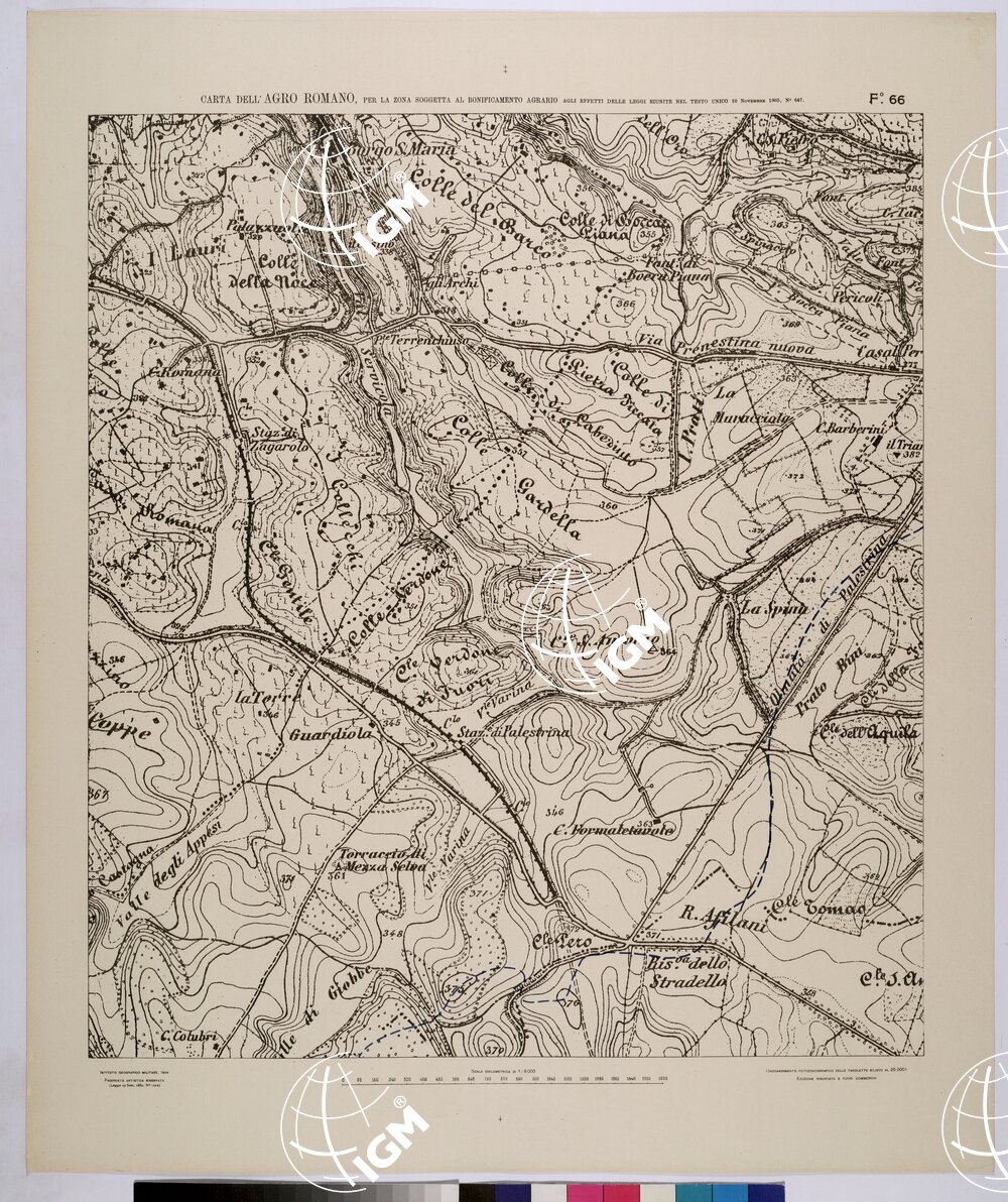 | Titolo proprio | CARTA DELL'AGRO ROMANO NEL RAPPORTO DI 1:8.000 PER LA ZONA SOGGETTA AL BONIFICAMENTO AGRARIO AGLI EFFETTI DELLE LEGGI RIUNITE IN TESTO UNICO CON R.D. 10 NOVEMBRE 1905 N°647 – FOGLIO 66. |