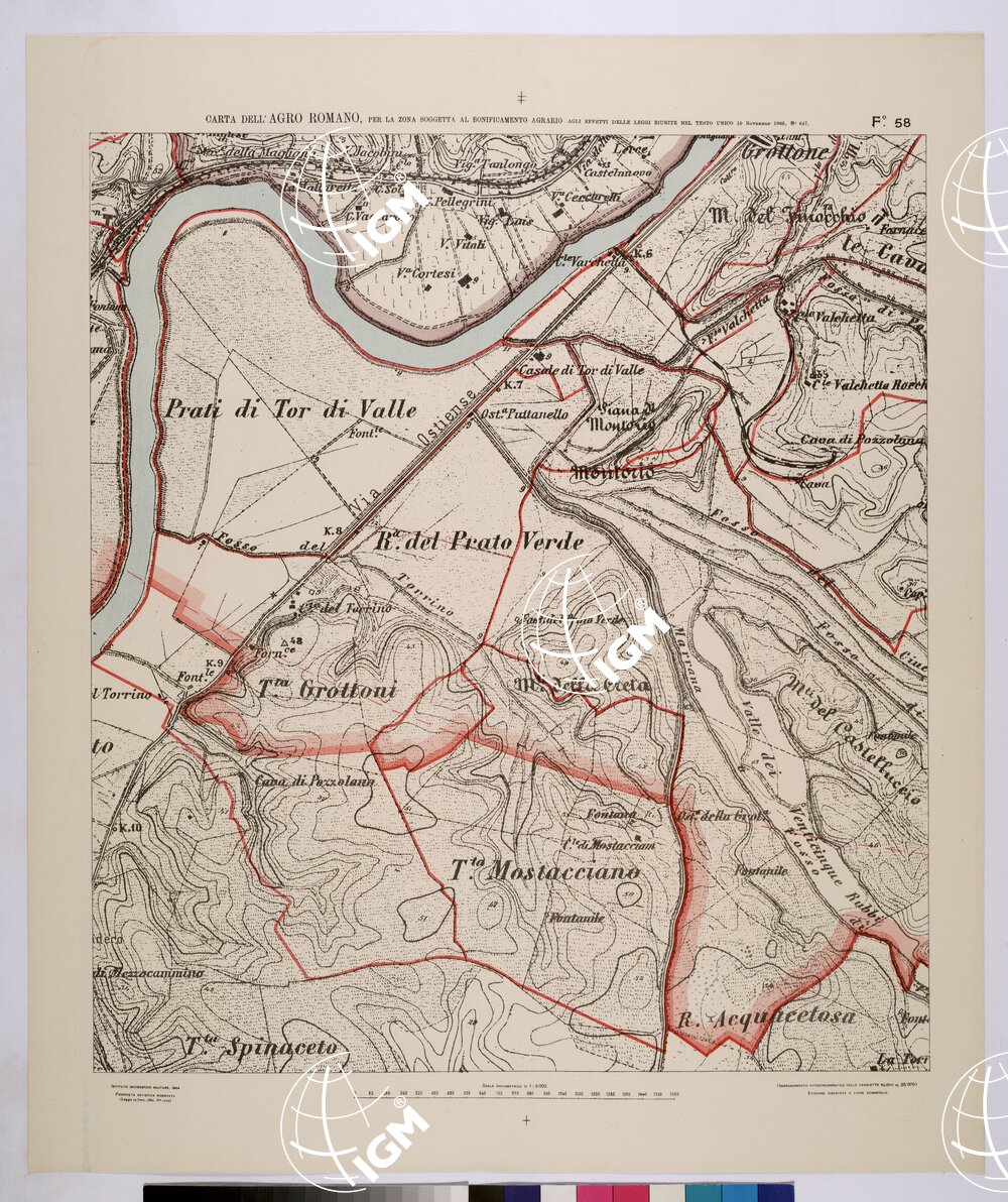 CARTA DELL’AGRO ROMANO NEL RAPPORTO DI 1:8.000 PER LA ZONA SOGGETTA AL BONIFICAMENTO AGRARIO AGLI EFFETTI DELLE LEGGI RIUNITE IN TESTO UNICO CON R.D. 10 NOVEMBRE 1905 N°647 – FOGLIO 58.