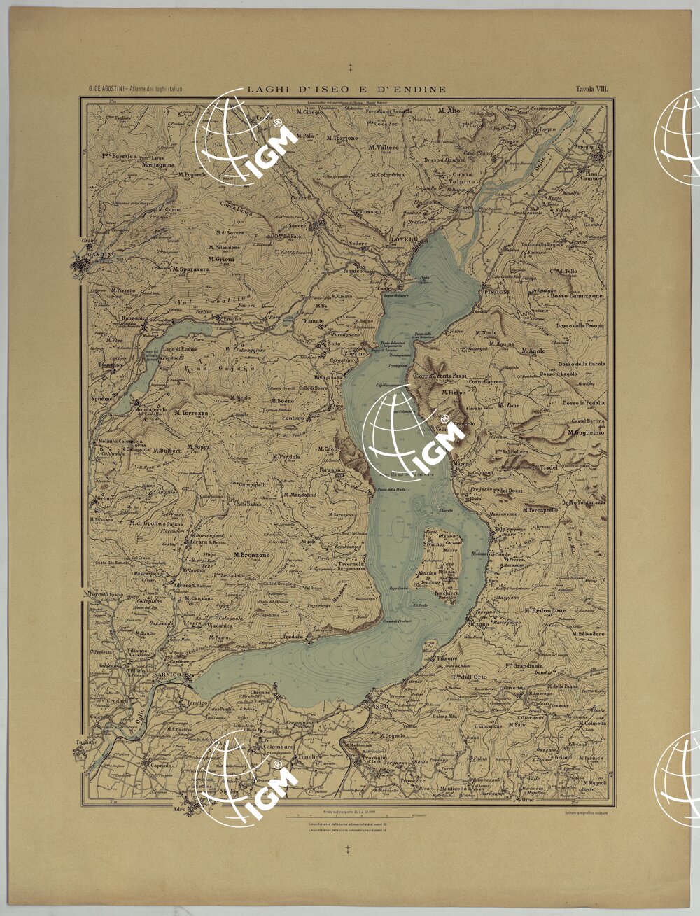ATLANTE DEI LAGHI ITALIANI TAV VIII 2° COPIA LAGHI D’ISEO E D’ENDINE