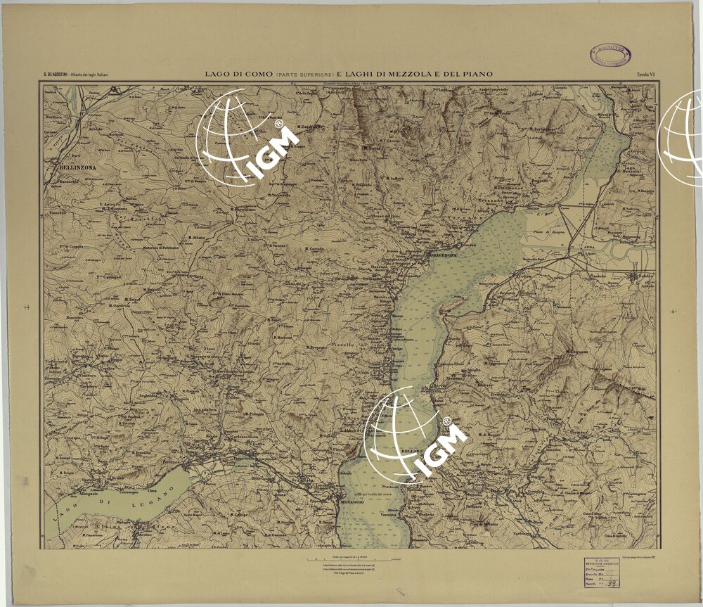 ATLANTE DEI LAGHI ITALIANI TAV VI 2° COPIA LAGO DI COMO (PARTE SUPERIORE) E LAGHI DI MEZZOLA E DEL PIANO