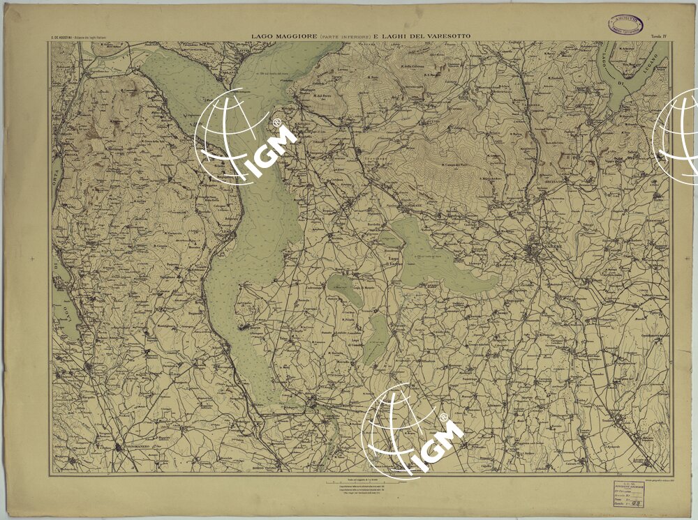 ATLANTE DEI LAGHI ITALIANI TAV IV 2° COPIA LAGO MAGGIORE (PARTE INFERIORE) E LAGHI DEL VARESOTTO