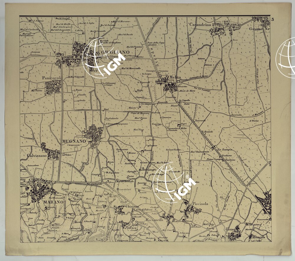 Ingrandimento fotolitografico di alcuni fogli della carta topografica e idrografica dei contorni di Napoli ad 1:25,000 in 15 fogli, edita nel 1818-1870 al corrente per le sole ferrovie. Le quote altimetriche e gli scandagli sono espressi in passi geodetici. Passo geodetico= M.1,852.Documento formato da 12 fogli piu’ una copia.