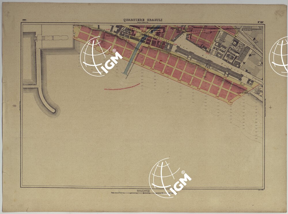 | Titolo proprio | PIANTA TOPOGRAFICA DELLA CITTA' DI NAPOLI ALLA SCALA DI 1:4.000 EDIZIONE CON APPROVAZIONE PER AGGIORNAMENTI CATASTALI – FOGLIO 19 QUARTIERE GRANILI. |