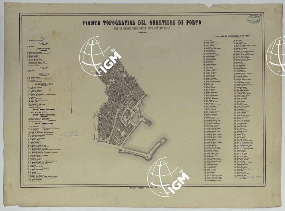 CARTA DEI DODICI QUARTIERI DI NAPOLI – PIANTA TOPOGRAFICA DEL QUARTIERE DI PORTO CON LA INDICAZIONE DELLE COSE PIU’ NOTABILI.
