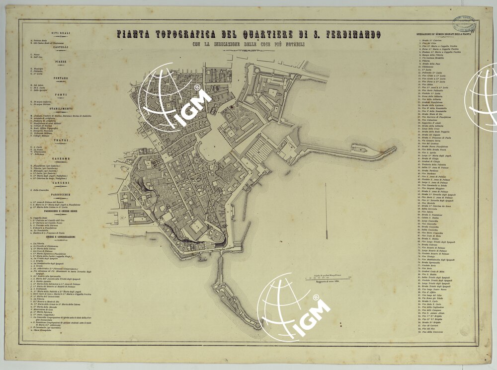 CARTA DEI DODICI QUARTIERI DI NAPOLI – PIANTA TOPOGRAFICA DEL QUARTIERE DI S. FERDINANDO CON LA INDICAZIONE DELLE COSE PIU’ NOTABILI.