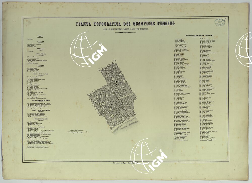CARTA DEI DODICI QUARTIERI DI NAPOLI – PIANTA TOPOGRAFICA DEL QUARTIERE DEL PENDINO CON LA INDICAZIONE DELLE COSE PIU' NOTABILI.