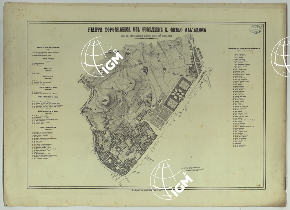 CARTA DEI DODICI QUARTIERI DI NAPOLI – PIANTA TOPOGRAFICA DEL QUARTIERE S. CARLO ALL'ARENA CON LA INDICAZIONE DELLE COSE PIU' NOTABILI.