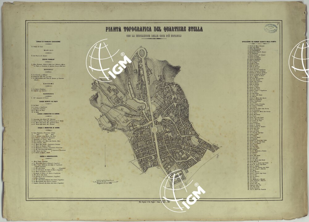 CARTA DEI DODICI QUARTIERI DI NAPOLI – PIANTA TOPOGRAFICA DEL QUARTIERE STELLA CON LA INDICAZIONE DELLE COSE PIU’ NOTABILI.