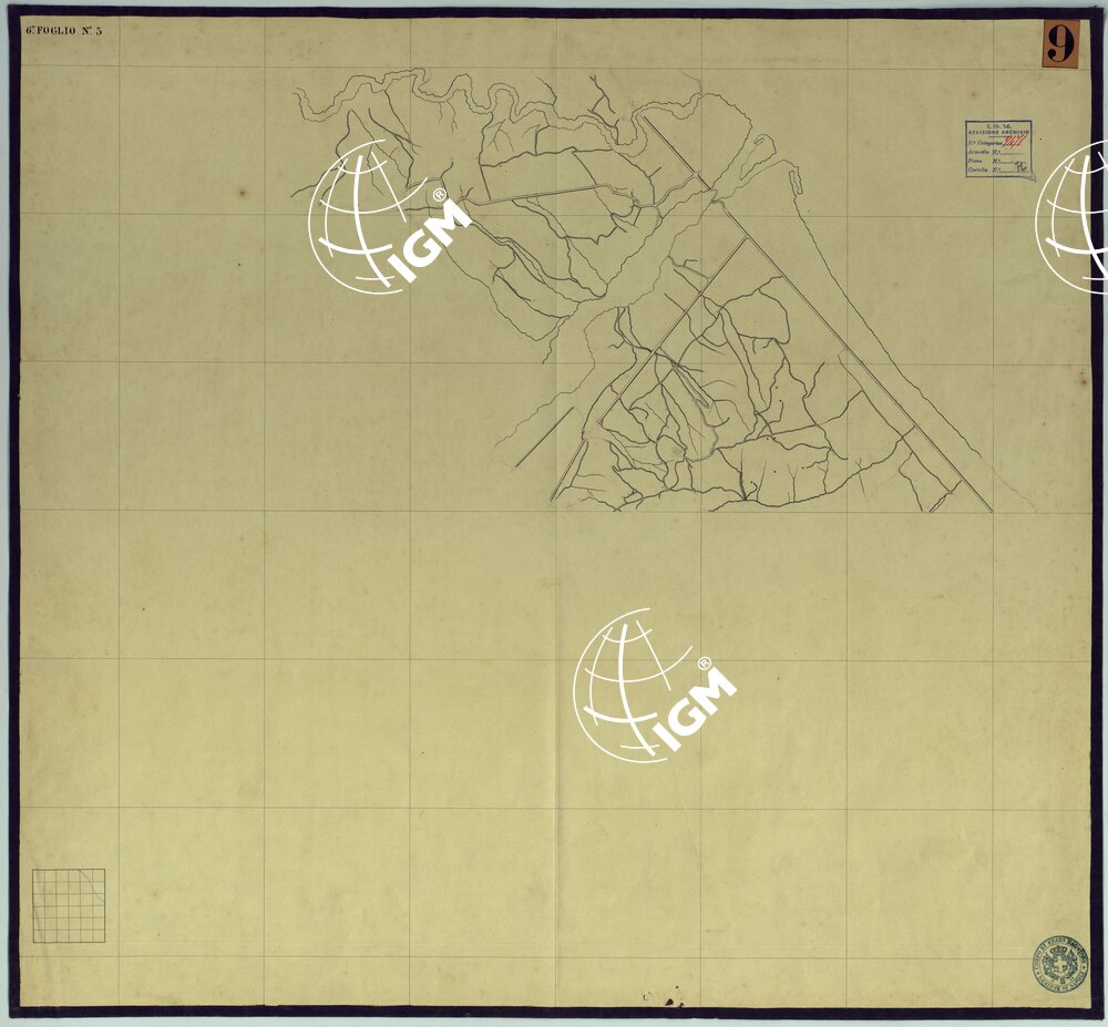 Sono 120 tavolette montate su tela o seta, copiate e messe in netto all’Officio Topografico di Napoli su le levate eseguite dal 1834 al 1860 per la formazione della Carta del Reame di Napoli alla scala di 1:80.000. L’esecuzione di questa carta venne decretata nel 1814: essa fu però iniziata, dati i movimenti politici di quell’epoca, soltanto nel 1833. Queste tavolette si riferiscono ai fogli 1, 5, 8, 9, 12, 13, 17-19, 28, 29, 33 della suddetta carta la quale doveva essere disegnata ed incisa su rame a bulino in fogli rettangolari con orografia a tratteggio e curve di livello tracciate alla equidistanza di 10 passi (m. 18,52) o di 52 passi (m. 92,60). Di essa peraltro furono pubblicati solamente cinque fogli, cioè: Napoli, Caserta, Gaeta, Leonessa, Cittaducale, tra il 1861 e 1870. L’I.G.M. conserva i rami dei primi tre di questi fogli. La carta all’80.000, pregevolissima per valore artistico e scientifico, venne giudicata superiore alle altre produzioni cartografiche contemporanee non solo italiane, ma europee (cfr. Mori A., La cartografia ufficiale in Italia e l’I.G.M. 1922, pag.107).