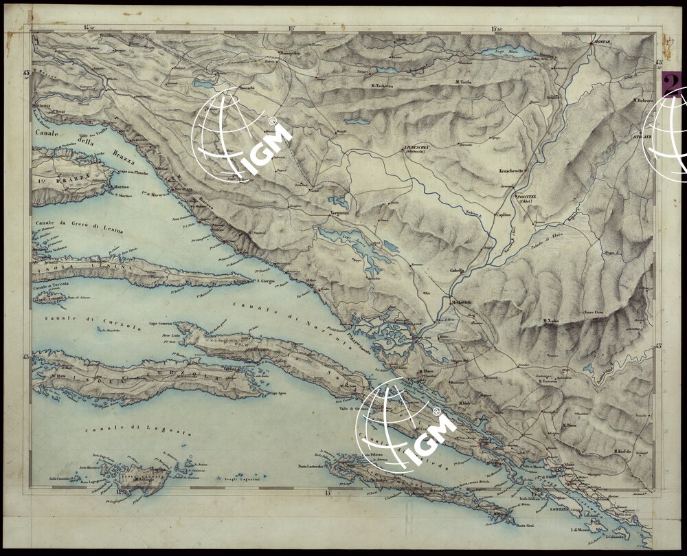 Fogli in parte disegnati e in parte costituiti da mosaici fotografici. Il materiale è servito da originale per la riproduzione eseguita nell’Ufficio Tecnico dello Stato Maggiore di Torino. L’orografia è rappresentata con tratteggio a luce obliqua.