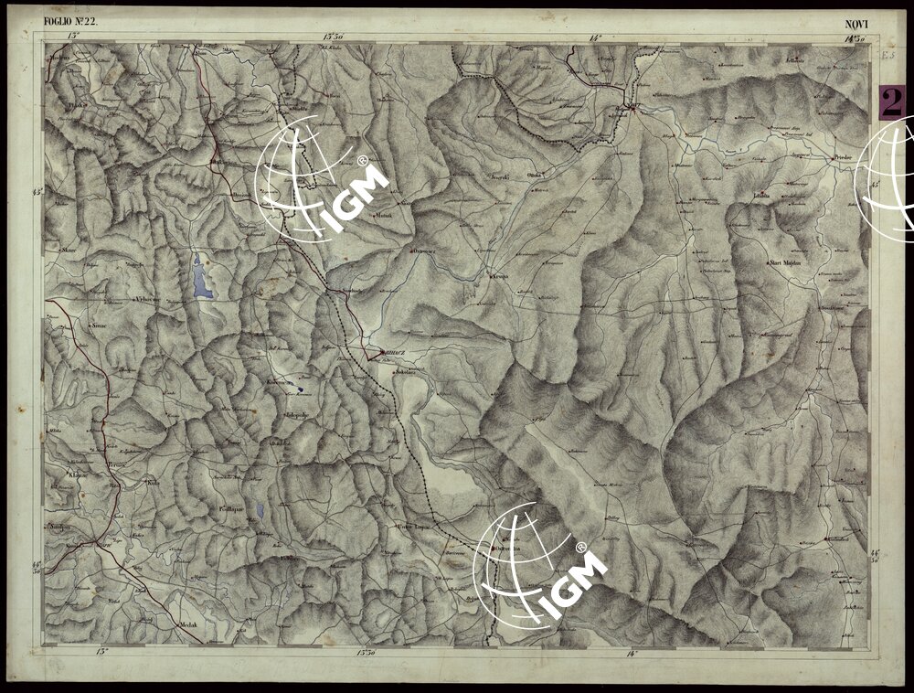CARTA COROGRAFICA DEI VERSANTI SETTENTRIONALI E MERIDIONALI DELLE ALPI RETICHE, CARNICHE E GIULIE – Foglio 22 Novi