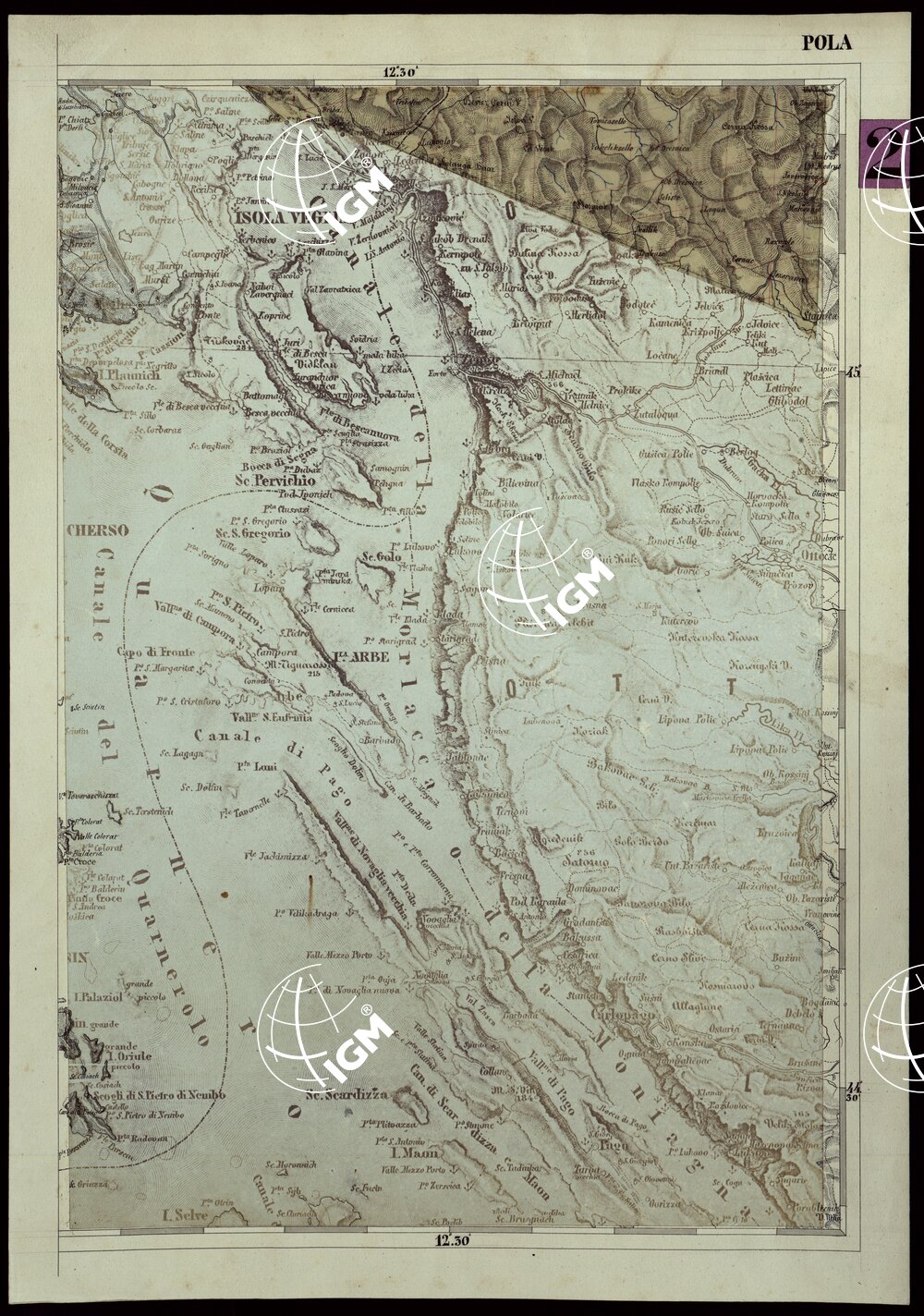 CARTA COROGRAFICA DEI VERSANTI SETTENTRIONALI E MERIDIONALI DELLE ALPI RETICHE, CARNICHE E GIULIE – Pola