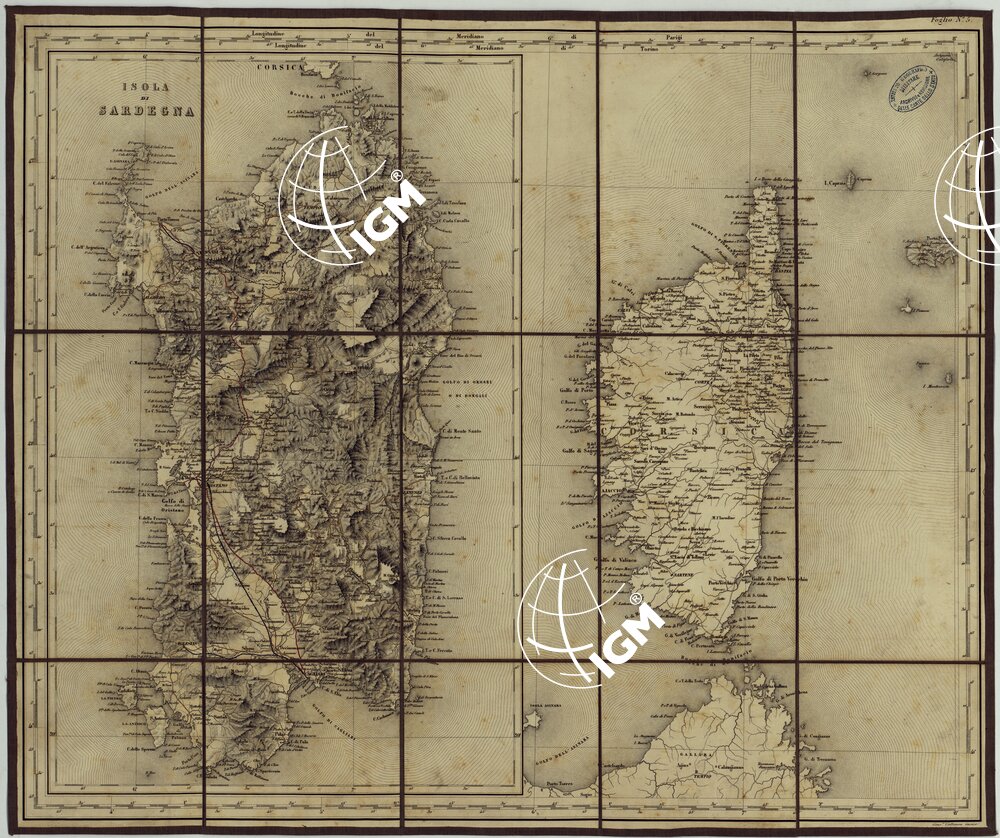 CARTA COROGRAFICA DELL’ITALIA SUPERIORE E MEDIA AL 600.000 – Foglio 5 – Sardegna – Corsica