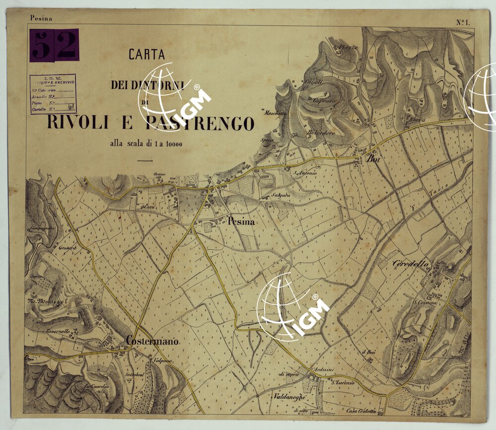 | Titolo proprio | CARTA DEI DINTORNI DI RIVOLI E PASTRENGO ALLA SCALA DI 1 AL 10.000 – FOGLIO 1 PAESINA |