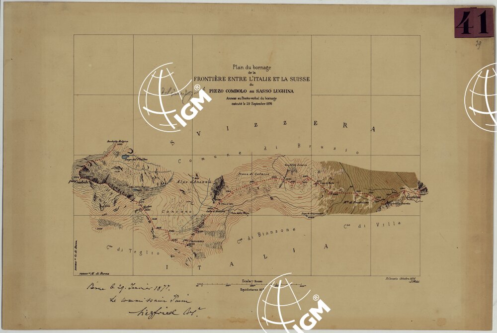 PLAN DU BORNAGE DE LA FRONTIERE ENTRE L’ITALIE ET LA SUISSE DU PIZZO COLOMBO AU SASSO LUGHINA. ANNEXE AU PROCES-VRBALDU BORNAGE EXECUTE’ LE 29 SEPTEMBRE 2° COPIA