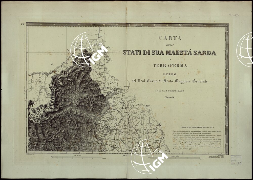 CARTA DEGLI STATI DI SUA MAESTA’ SARDA IN TERRAFERMA OPERA DEL REAL CORPO DI STATO MAGGIORE GENERALE INCISA E PUBBLICATA – FOGLIO II TITOLO.