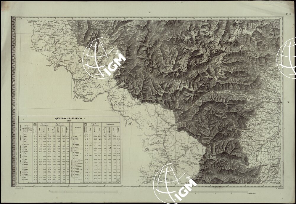 CARTA DEGLI STATI DI SUA MAESTA’ SARDA IN TERRAFERMA OPERA DEL REAL CORPO DI STATO MAGGIORE GENERALE INCISA E PUBBLICATA – FOGLIO III.