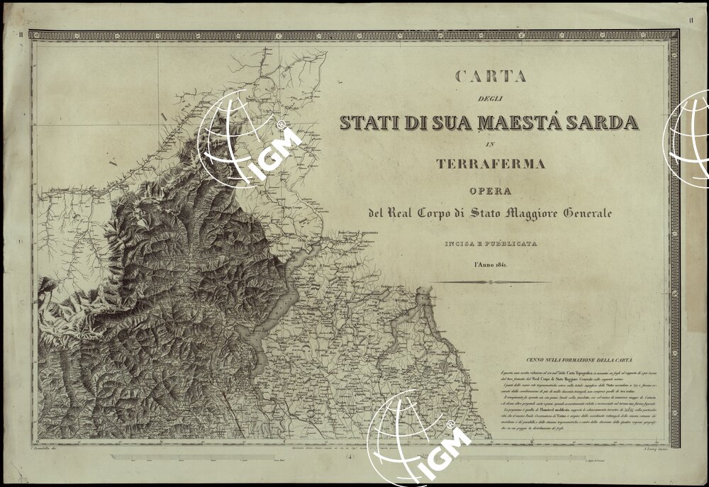 CARTA DEGLI STATI DI SUA MAESTA’ SARDA IN TERRAFERMA OPERA DEL REAL CORPO DI STATO MAGGIORE GENERALE INCISA E PUBBLICATA – FOGLIO II TITOLO.