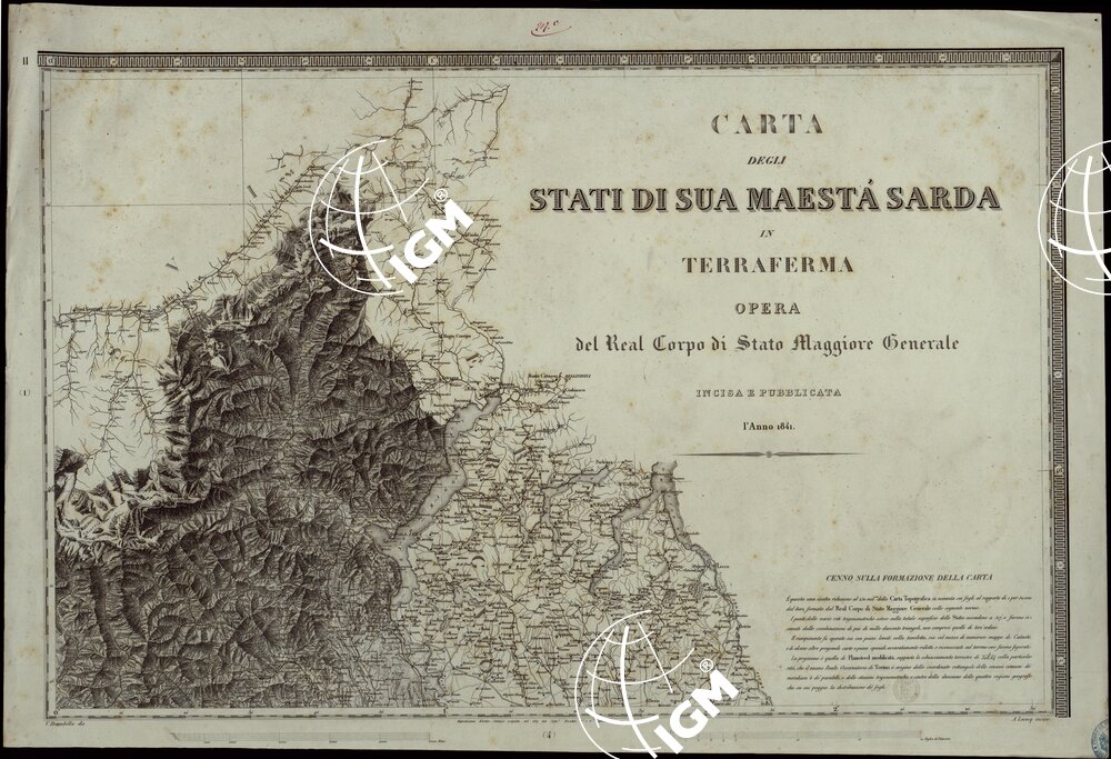 CARTA DEGLI STATI DI SUA MAESTA’ SARDA IN TERRAFERMA OPERA DEL REAL CORPO DI STATO MAGGIORE GENERALE INCISA E PUBBLICATA – FOGLIO II TITOLO.