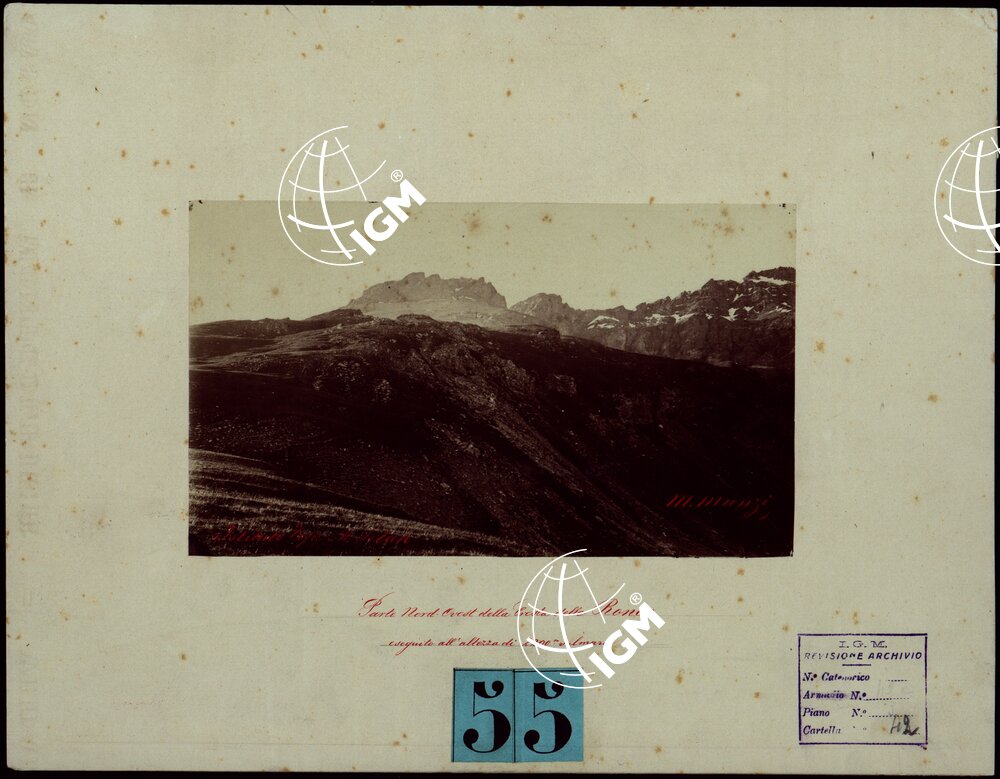 TRENTADUE PANORAMI FOTOGRAFICI ESEGUITI DAL TENENTE DI STATO MAGGIORE SIG. MANZI NEL 1876, PER STUDI SULLA FOTOTOPOGRAFIA – PARTE NORD-OVEST DELLA CRESTA DELLA RONCE ESEGUITO ALL’ALTEZZA DI 2200 M. SUL MARE.