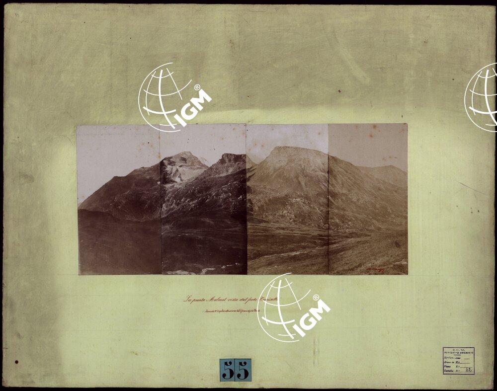 TRENTADUE PANORAMI FOTOGRAFICI ESEGUITI DAL TENENTE DI STATO MAGGIORE SIG. MANZI NEL 1876, PER STUDI SULLA FOTOTOPOGRAFIA – LA PUNTA MALMOT VISTA DAL FORTE VARRISELLA ELEMENTO N.3 PER LA COSTRUZIONE DEL GHIACCIAJO DI BART.