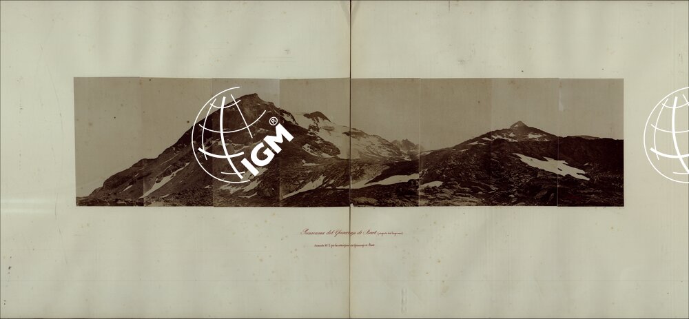 TRENTADUE PANORAMI FOTOGRAFICI ESEGUITI DAL TENENTE DI STATO MAGGIORE SIG. MANZI NEL 1876, PER STUDI SULLA FOTOTOPOGRAFIA – PANORAMA DEL GHIACCIAJO DI BART (ESEGUITO DAL LAGO) ELEMENTO N. 2 PER LA COSTRUZIONE DEL GHIACCIAJO BART.