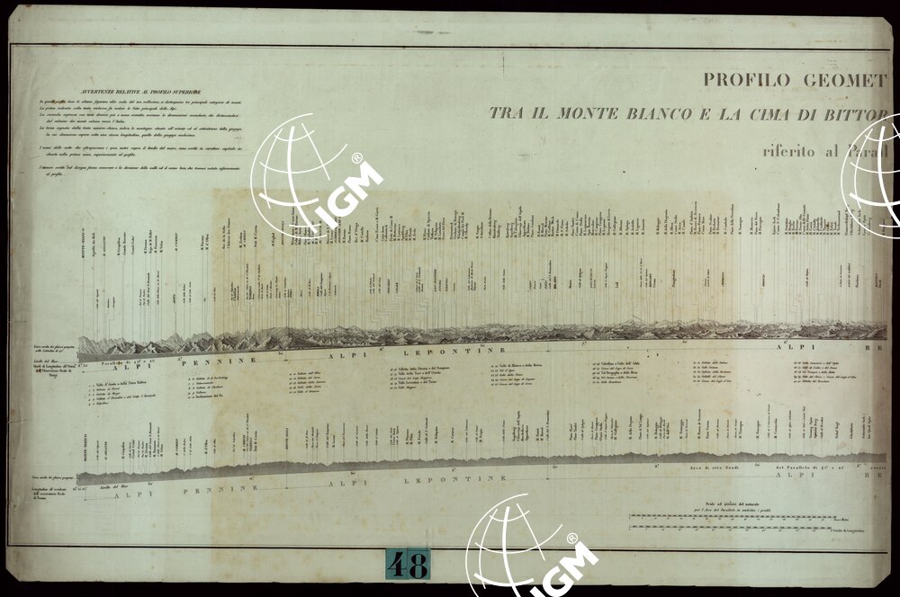 PROFILO GEOMETRICO DELLE ALPI TRA IL MONTE BIANCO E LA CIMA DI BITTORY ALL'ORIENTE DEL GOLFO DI QUARNERO RIFERITO AL PARALLELO DI 45° e 25' PRIMA PARTE.