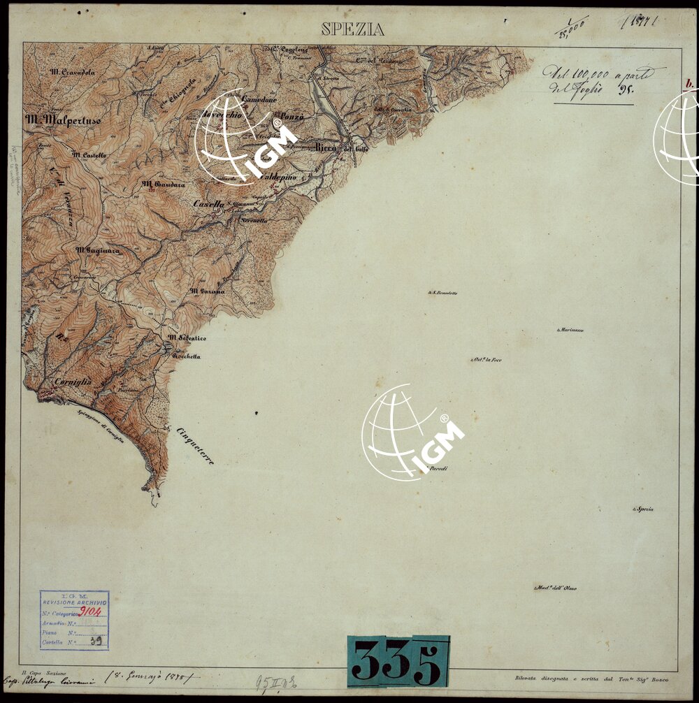 TAVOLETTA DI SPEZIA FOGLIO 95 RILEVATA E DISEGANTA DAL TEN. BOSCO AL 1:25.000 – SPEZIA PARTE B