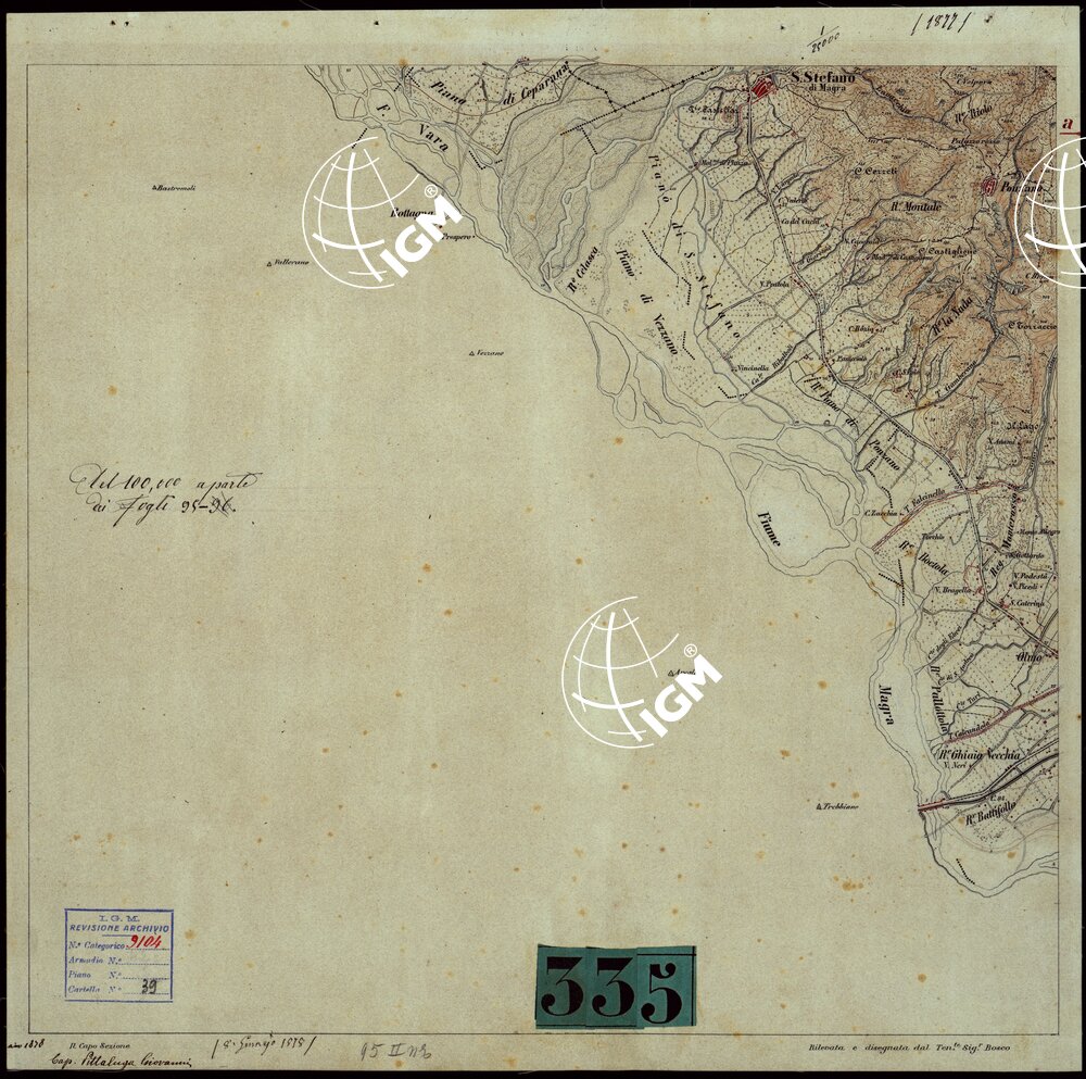 TAVOLETTA DI SPEZIA FOGLIO 95 RILEVATA DISEGNATA DAL TEN. BOSCO AL 1:25.000 SPEZIA PARTE 1