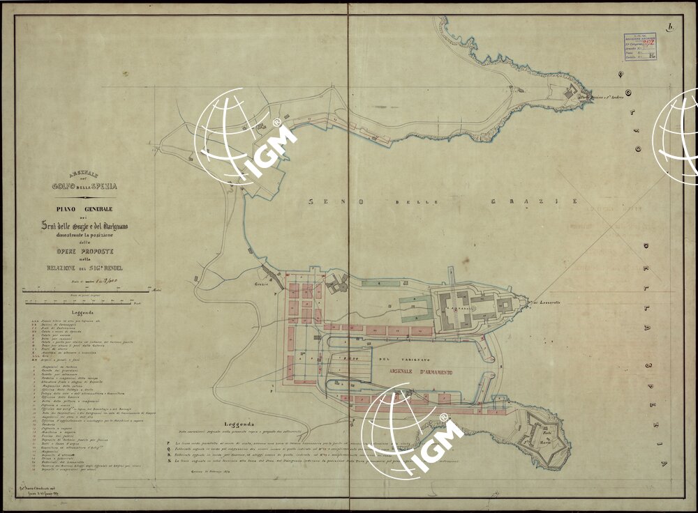 ARSENALE NEL GOLFO DELLA SPEZIA PIANO GENERALE DEI SENI DELLE GRAZIE E DEL NAVIGNANO DIMOSTRANTE LA POSIZIONE DELLE OPERE PROPOSTE NELLA RELAZIONE DEL SIG.R RENDEL