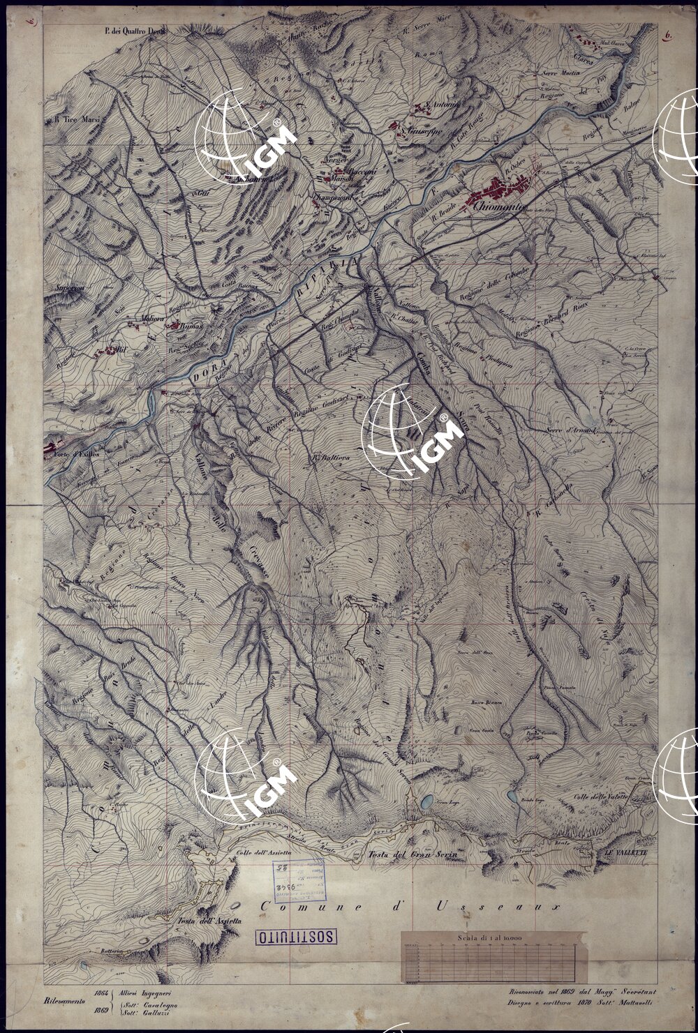 Trentatré minute di campagna montate su tela riconosciute sul terreno tra il 1861 ed il 1881. Il documento si completa con quattro quadri d’unione.