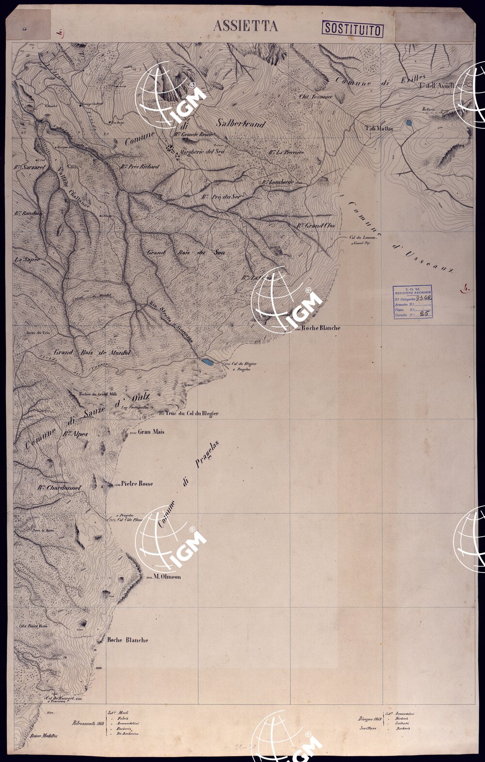 VALLI DELLA DORA RIPARIA SITUAZIONE DAL 1860 AL 1871 RILIEVI AL 10.000 ASSIETTA – SOSTITIUTO.