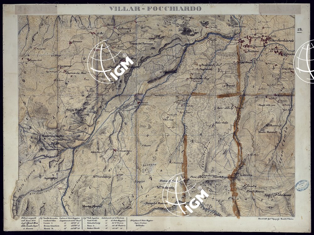 VALLI DELLA DORA RIPARIA -Situazione dal 1860 al 1871 Rilevi al 10.000 – VILLAR-FOCCHIARDO – Foglio 19