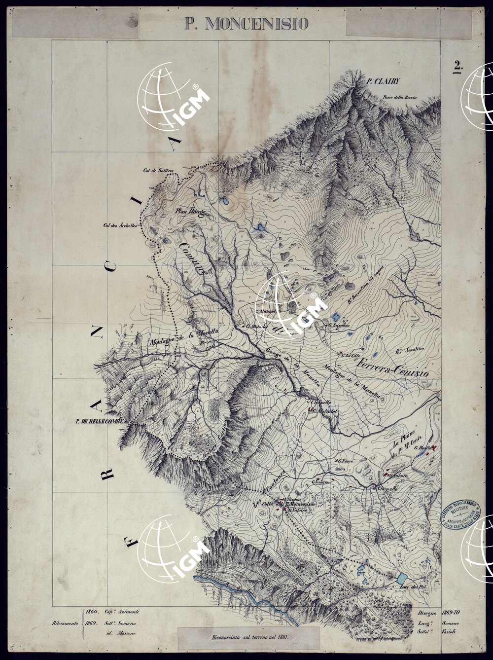 VALLI DELLA DORA RIPARIA SITUAZIONE DAL 1860 AL 1871 RILIEVI AL 10.000 P. MONCENISIO – FOGLIO 2.