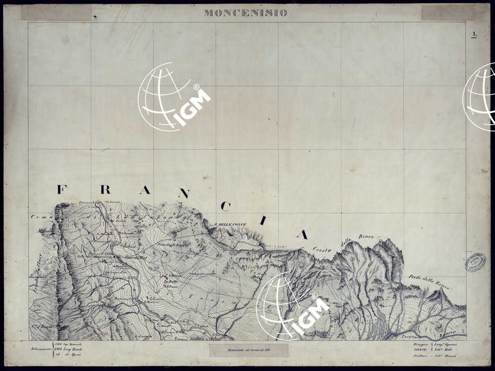 Trentatré minute di campagna montate su tela riconosciute sul terreno tra il 1861 ed il 1881. Il documento si completa con quattro quadri d’unione.