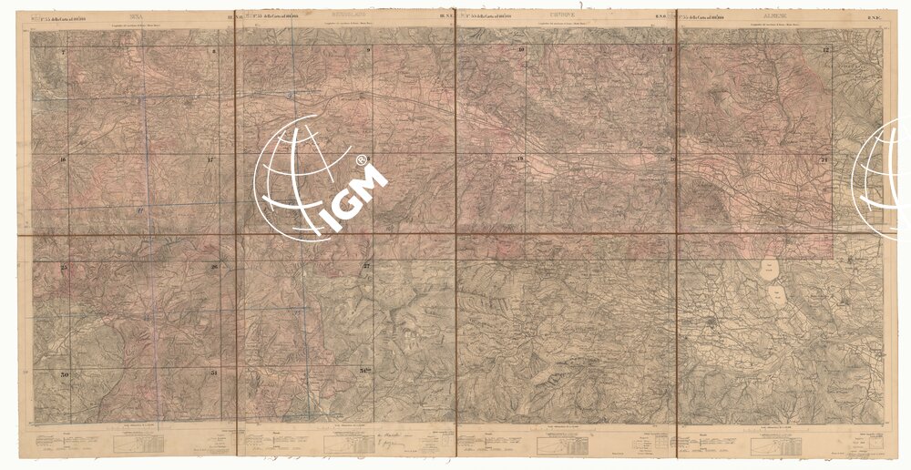 Trentatré minute di campagna montate su tela riconosciute sul terreno tra il 1861 ed il 1881. Il documento si completa con quattro quadri d’unione.