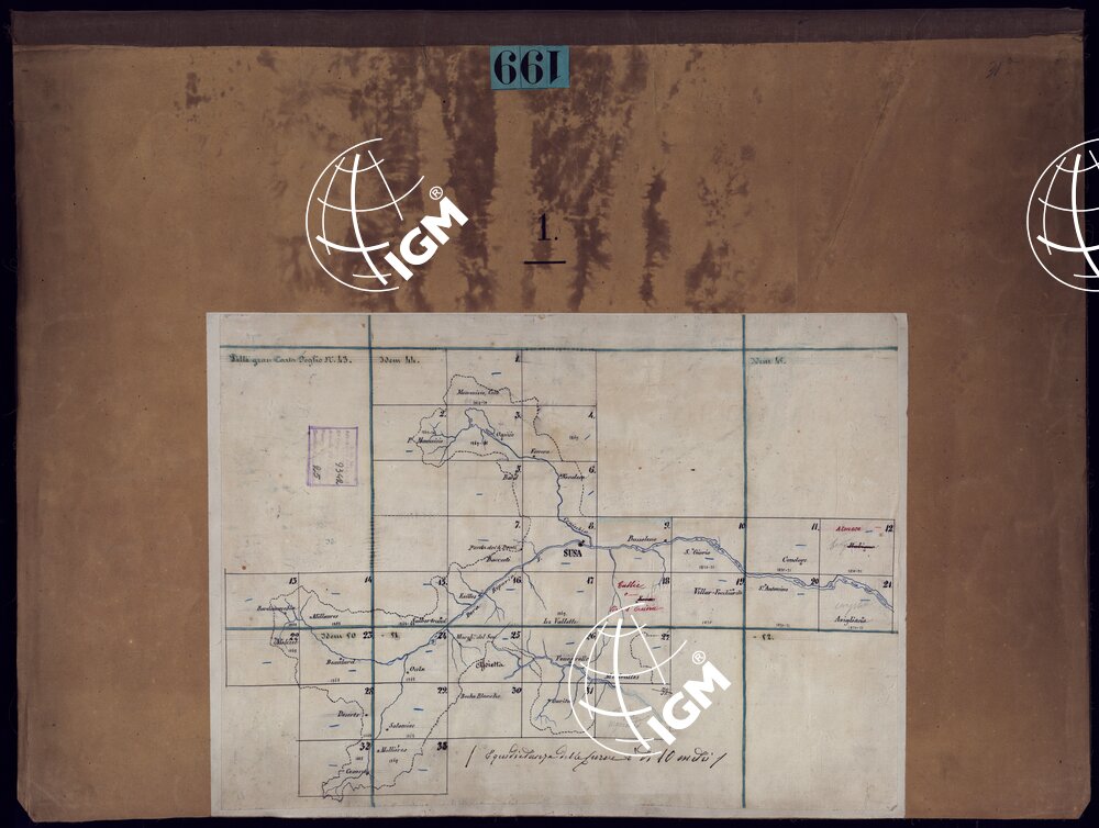 Trentatré minute di campagna montate su tela riconosciute sul terreno tra il 1861 ed il 1881. Il documento si completa con quattro quadri d’unione.
