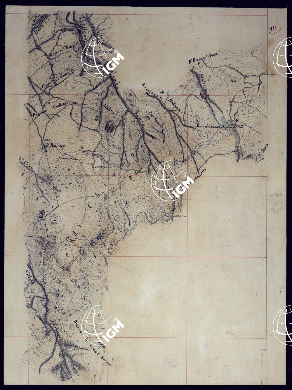 VALLE DELLA DORA EXILLES MINUTE AL 10.000. RILIEVI ESEGUITI NEL 1864 ALLIEVI INGEGNERI DEL R. CORPO DEL GENIO CIVILE ALLA SCALA DI 1 A 10.000 – FOGLIO 10.