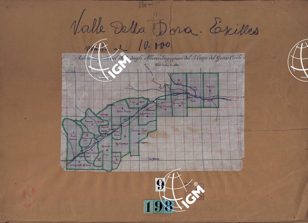 VALLE DELLA DORA EXILLES MINUTE AL 10.000. RILIEVI ESEGUITI NEL 1864 ALLIEVI INGEGNERI DEL R. CORPO DEL GENIO CIVILE ALLA SCALA DI 1 A 10.000 – QUADRO D’UNIONE.