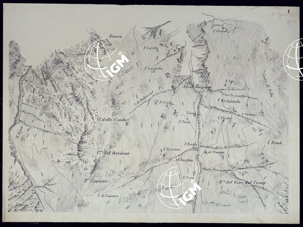 | Note foto | Per il quadro d'unione vedere il "Grafico indicante gli elementi per la formazione di una carta di Vinadio e dintorni alla scala di 1:10000 che si voleva fare dal Comitato di Artiglieria e Genio". |