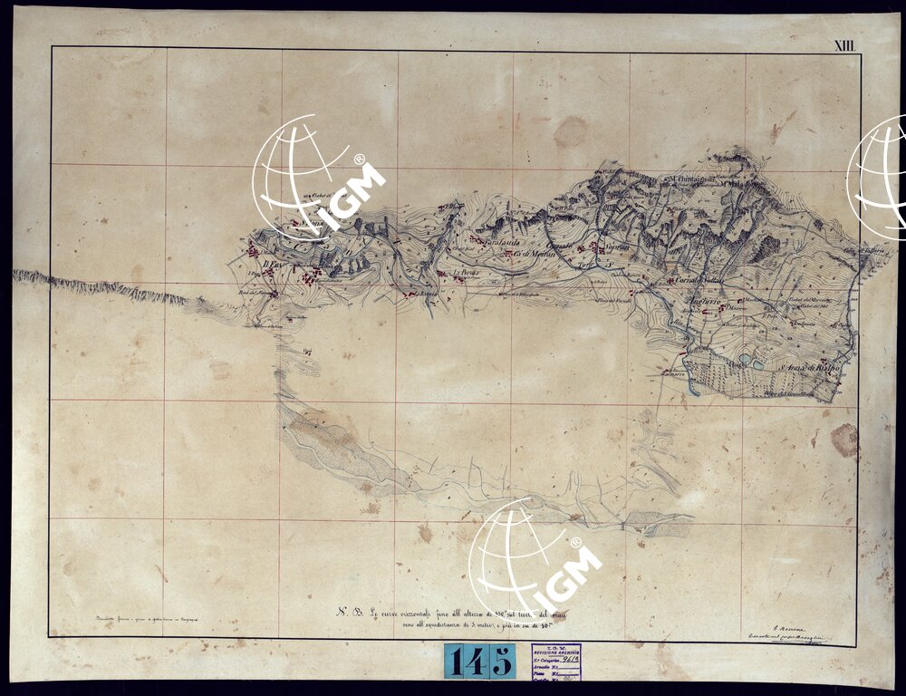 VINADIO E DINTORNI FRAZIONI E TAVOLETTE RILIEVO AL 10.000 DIRETTORE A. RIGHINI COLONELLO -TAVOLA XIII
