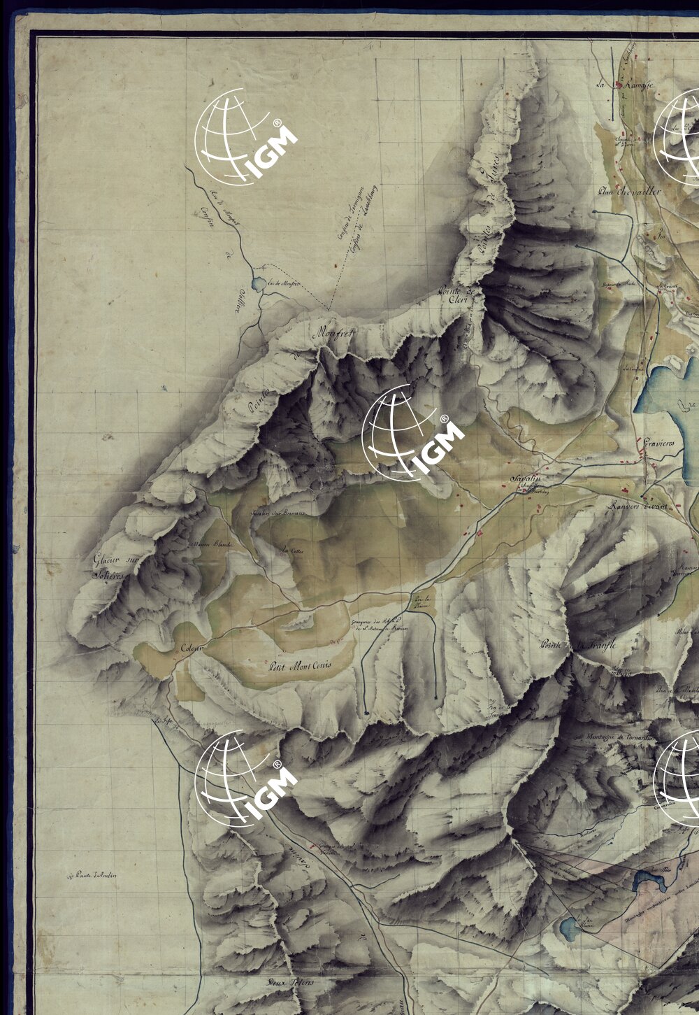 Un foglio grande montato su tela, scala grafica di trabucchi (600= m. 0,198). Disegno a penna a varie tinte. Non porta indicazioni di data ma sembra dei primi del secolo XIX. Da alcune indicazioni contenute nel disegno, la carta servì per questioni di confini territoriali.