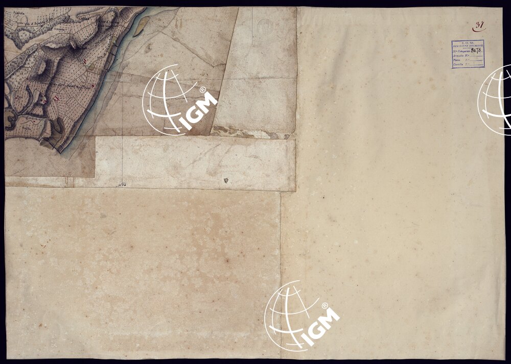 Disegno a penna, in 37 fogli, oltre un quadro d’unione, rappresentante il territorio Canavese e i Comuni limitrofi (Gassino, S. Mauro Torinese, Castiglion Torinese e Pavarolo) e cioè la regione compresa tra Ciriè, S. Mauro, il corso del Po e la Dora Baltea. Scala di 300 trabucchi = m.0,098, pari a 1:9.450. Secondo indicazioni di archivio risulterebbe formato dalla riduzione di mappe catastali. Non porta indicazioni di data , ma si può ritenere del primo quarto del secolo XIX. Sopra alcuni fogli che appaiano diversamente ritagliati da come erano originariamente, si legge: ” Originale dai Signor Avico, Borgiotti Cantù e Marchetti”. Il disegno, abbastanza accurato, riproduce con notevole precisione, come comporta la scala, tutti i particolari topografici del territorio rappresentato; cioè corsi d’acqua, rete stradale, fabbricati, limiti amministrativi. Il rilievo del suolo è rappresentato con ombreggiatura ad acquerello. Mediante colori a segni convenzionali sono indicate le colture e i boschi. Ricchissima anche la toponomastica. In complesso un eccellente documento topografico di grande interesse per lo studio delle variazioni fisiografiche ed antropogeografiche della regione.