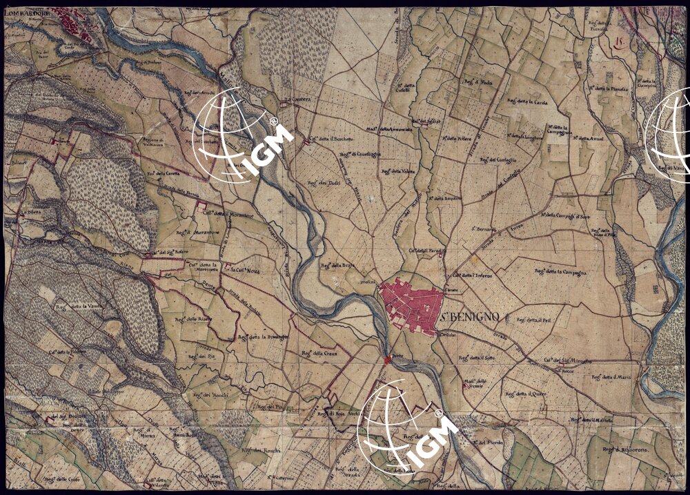 Disegno a penna, in 37 fogli, oltre un quadro d’unione, rappresentante il territorio Canavese e i Comuni limitrofi (Gassino, S. Mauro Torinese, Castiglion Torinese e Pavarolo) e cioè la regione compresa tra Ciriè, S. Mauro, il corso del Po e la Dora Baltea. Scala di 300 trabucchi = m.0,098, pari a 1:9.450. Secondo indicazioni di archivio risulterebbe formato dalla riduzione di mappe catastali. Non porta indicazioni di data , ma si può ritenere del primo quarto del secolo XIX. Sopra alcuni fogli che appaiano diversamente ritagliati da come erano originariamente, si legge: ” Originale dai Signor Avico, Borgiotti Cantù e Marchetti”. Il disegno, abbastanza accurato, riproduce con notevole precisione, come comporta la scala, tutti i particolari topografici del territorio rappresentato; cioè corsi d’acqua, rete stradale, fabbricati, limiti amministrativi. Il rilievo del suolo è rappresentato con ombreggiatura ad acquerello. Mediante colori a segni convenzionali sono indicate le colture e i boschi. Ricchissima anche la toponomastica. In complesso un eccellente documento topografico di grande interesse per lo studio delle variazioni fisiografiche ed antropogeografiche della regione.