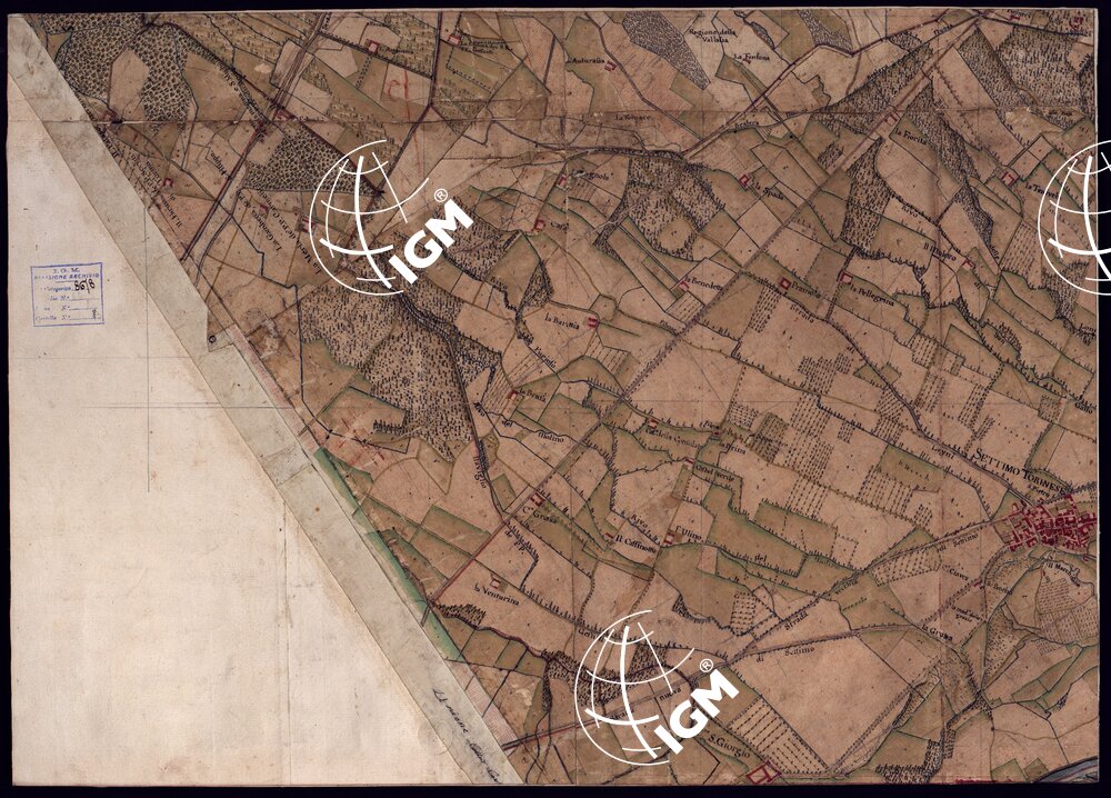 Disegno a penna, in 37 fogli, oltre un quadro d’unione, rappresentante il territorio Canavese e i Comuni limitrofi (Gassino, S. Mauro Torinese, Castiglion Torinese e Pavarolo) e cioè la regione compresa tra Ciriè, S. Mauro, il corso del Po e la Dora Baltea. Scala di 300 trabucchi = m.0,098, pari a 1:9.450. Secondo indicazioni di archivio risulterebbe formato dalla riduzione di mappe catastali. Non porta indicazioni di data , ma si può ritenere del primo quarto del secolo XIX. Sopra alcuni fogli che appaiano diversamente ritagliati da come erano originariamente, si legge: ” Originale dai Signor Avico, Borgiotti Cantù e Marchetti”. Il disegno, abbastanza accurato, riproduce con notevole precisione, come comporta la scala, tutti i particolari topografici del territorio rappresentato; cioè corsi d’acqua, rete stradale, fabbricati, limiti amministrativi. Il rilievo del suolo è rappresentato con ombreggiatura ad acquerello. Mediante colori a segni convenzionali sono indicate le colture e i boschi. Ricchissima anche la toponomastica. In complesso un eccellente documento topografico di grande interesse per lo studio delle variazioni fisiografiche ed antropogeografiche della regione.