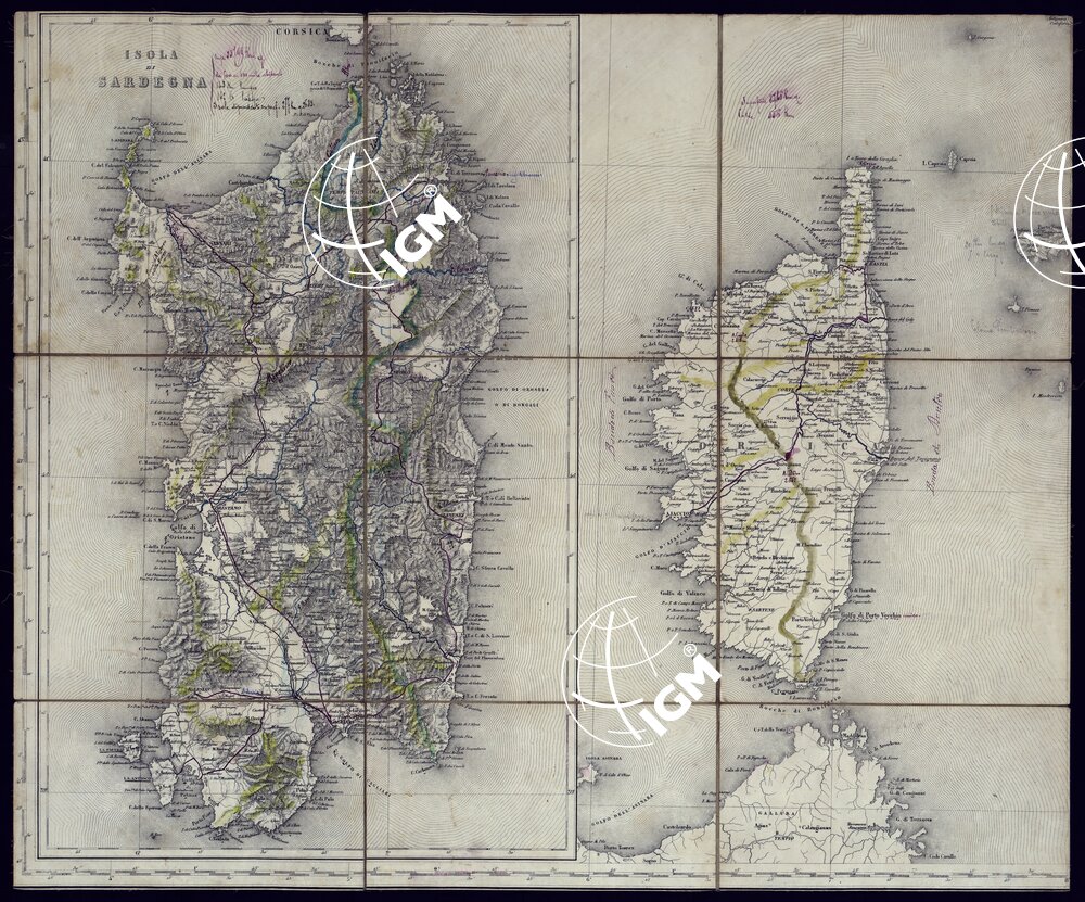 CARTA COROGRAFICA DELL’ITALIA SUPERIORE E CENTRALE ALLA SCALA DI 1:600.000 ISOLA di SARDEGNA – FOGLIO 5 (recto e verso) – TELA A STACCHI