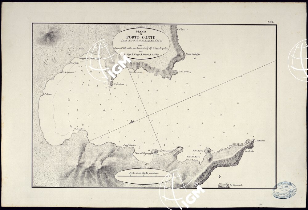 PORTOLANO DELLA SARDEGNA – CARTA IDROGRAFICA DELLA SARDEGNA LEVATA DAL CAVALIERE GIUSEPPE ALBINI CAPITANO DI VASCELLO NELLA MARINA DI S.M. SARDA – PIANO DI PORTO CONTE TAVOLA XXII.